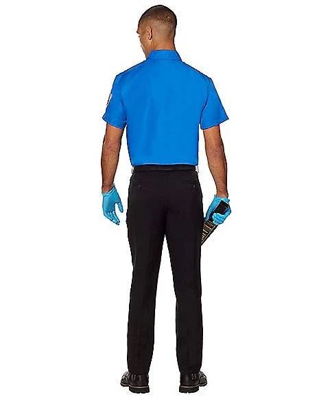 Arms and legs out, please! Travel enthusiasts will recognize this air security costume. With authentic markings, a customizable name badge, a realistic scanner, and blue gloves, this costume will help you get your friends ready to take flight directly into a good time.