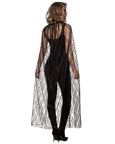 This black lace hooded cape will add a gorgeous touch to your Halloween look. With a tie ribbon detail, you’ll be able to secure this cape for a perfect fit and add instant style to your costume.