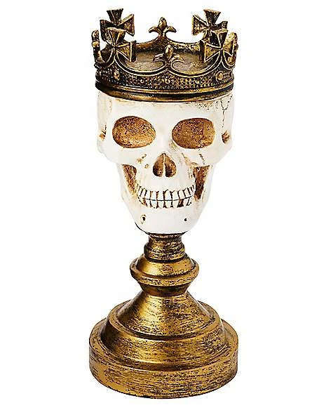 Make your home decor fit for royalty with this Crowned Skull Candle Holder. This candle holder features a crowned skull on the top with a flat area on its head for placing your candle. Use it as a candle holder or as tabletop decor and things are sure to get spooky this Halloween.Â