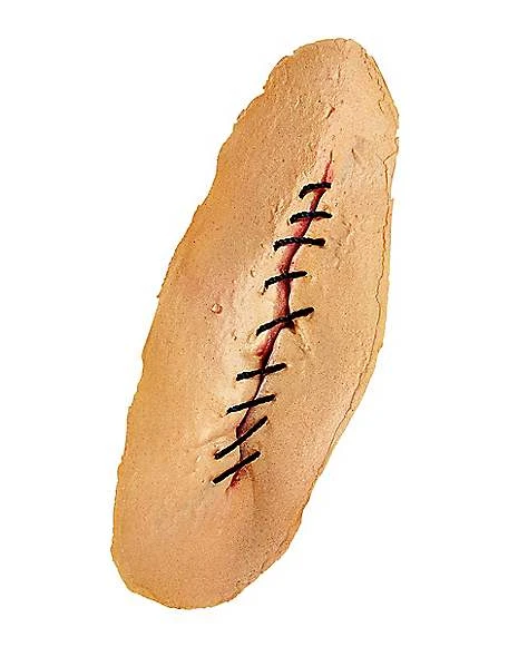 These fake, yet gruesome loose stitches give the impression that you ran out of the emergency room a bit prematurely. This highly realistic, pre-painted facial prosthetic goes on in three easy steps. Perfect whether you are an emergency room patient, a shark attack victim or a psycho killer!