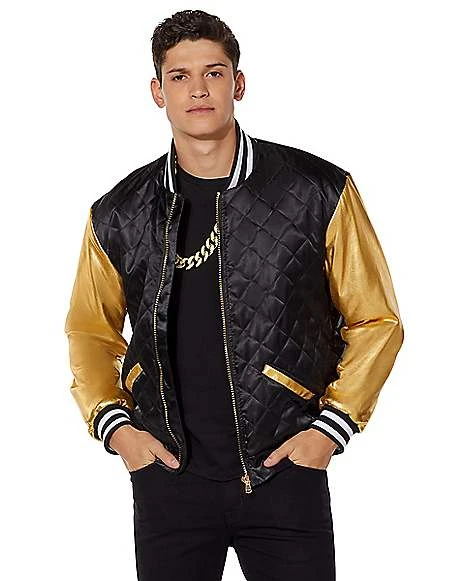 Create your perfect Halloween costume with this pimp bomber jacket! The quilted detail, gold-tone sleeves and zipper add a little touch of flair to your Halloween look!
