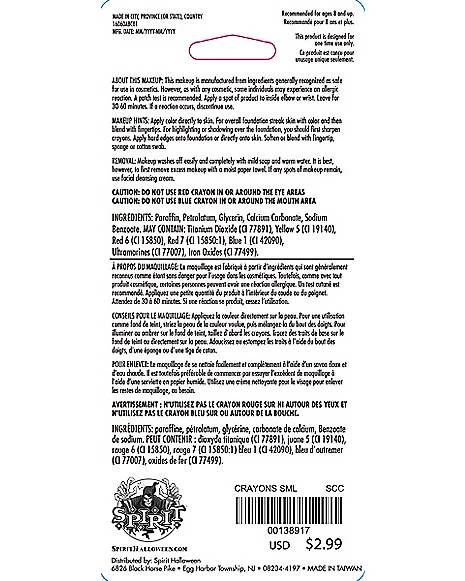 Add colorful detail and enliven any costume with these handy Small Makeup Crayons. Show off your artistic side and craft fine lines, geometric designs or realistic stitches and wounds. Bring a vampire, clown or zombie costume completely alive!