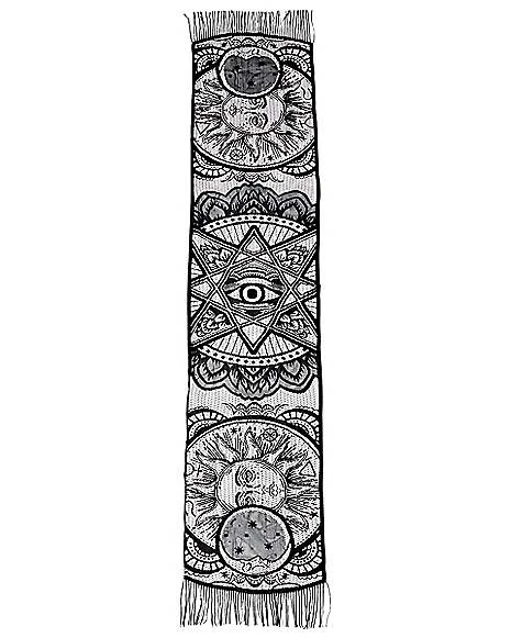 You’ll be ready to do tarot readings or simply create an atmosphere of mystical arts when you decorate with this tarot table runner. Add it to your Halloween décor for a totally festive look.