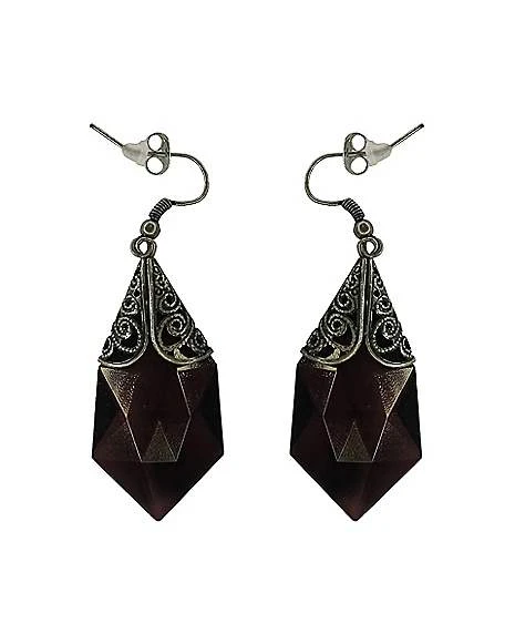 Add a gothic look to any costume with these beautiful earrings. Featuring red stones shaped as tear drops, these earrings are perfect for any undead queen!